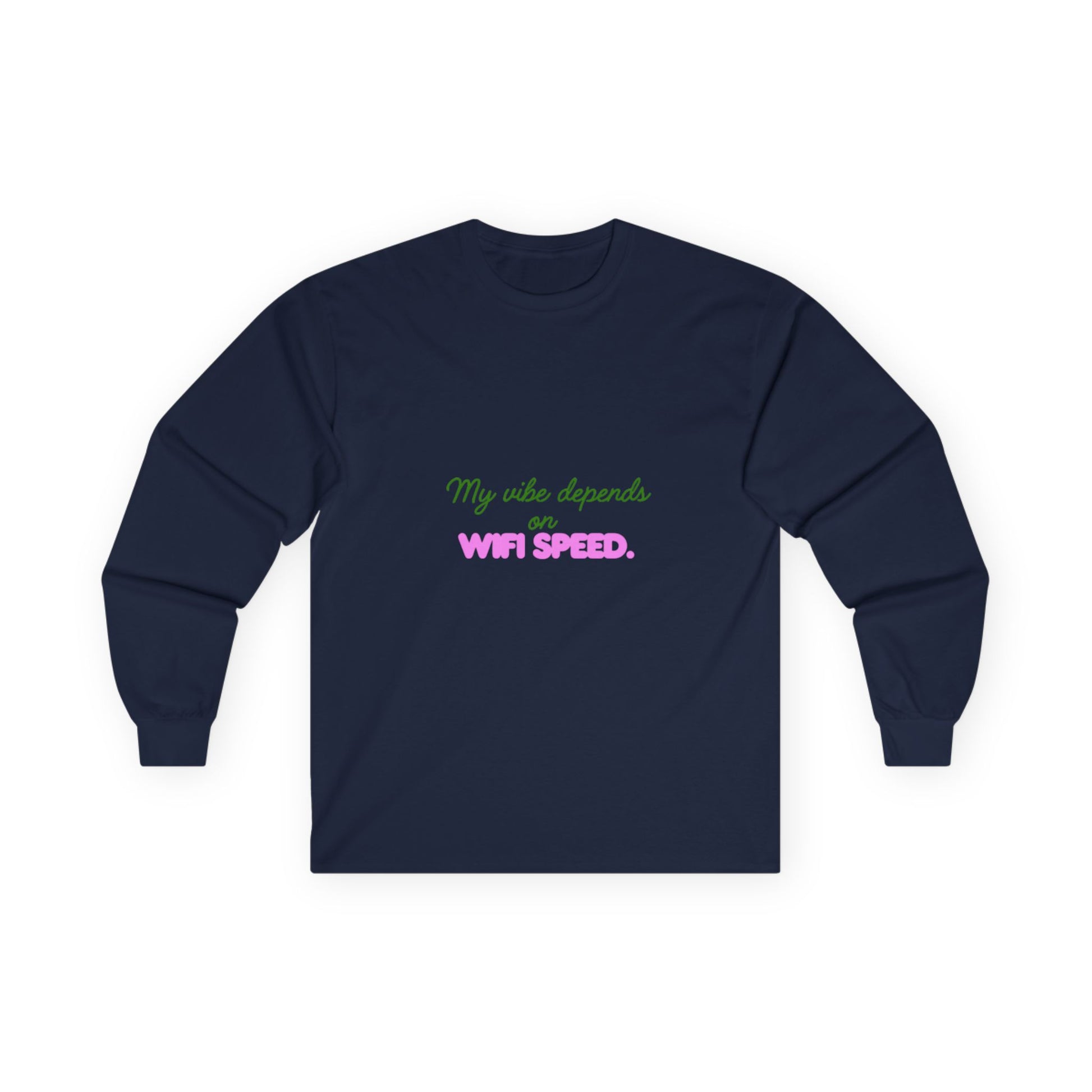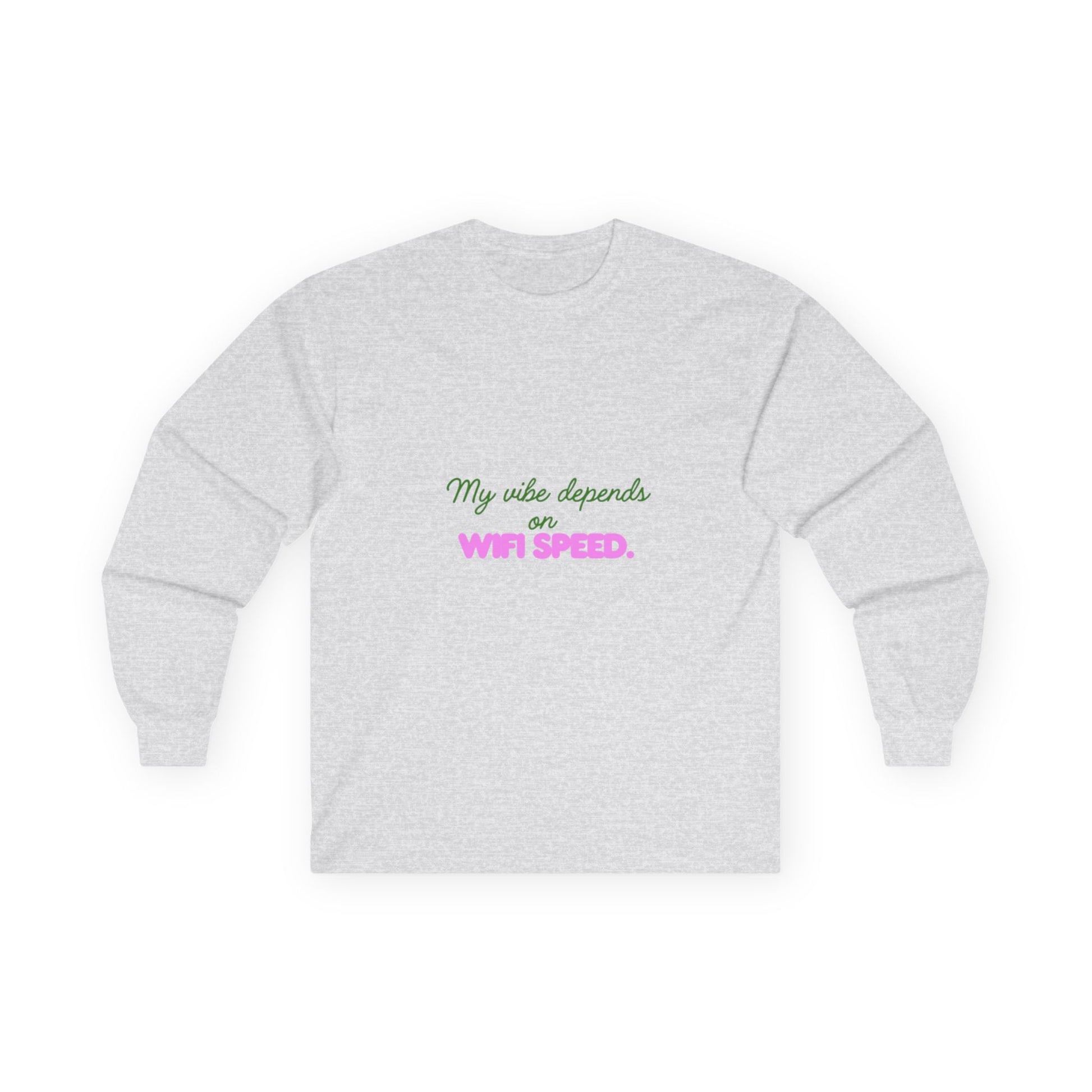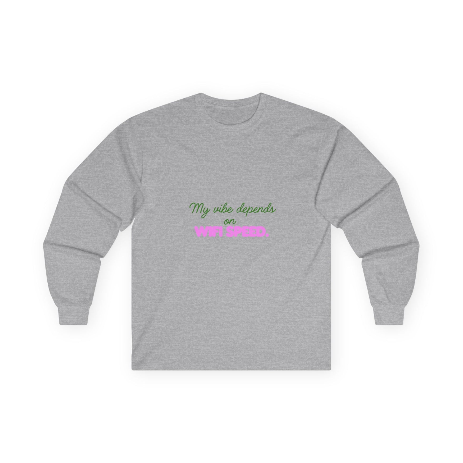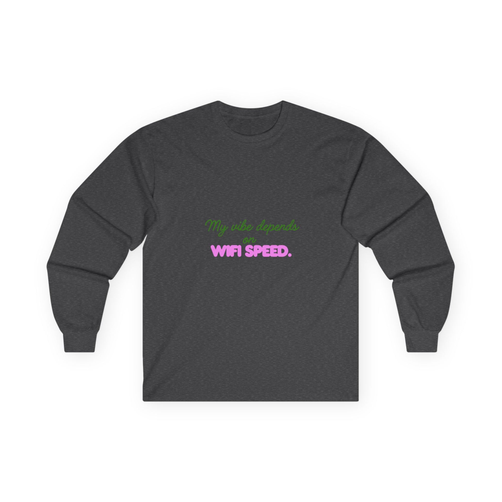 My Vibe Depends on WiFi Speed Long Sleeve Tee, Funny Tech Shirt, Gift for Gamers, Internet Lover's Apparel, Comfortable Casual Wear