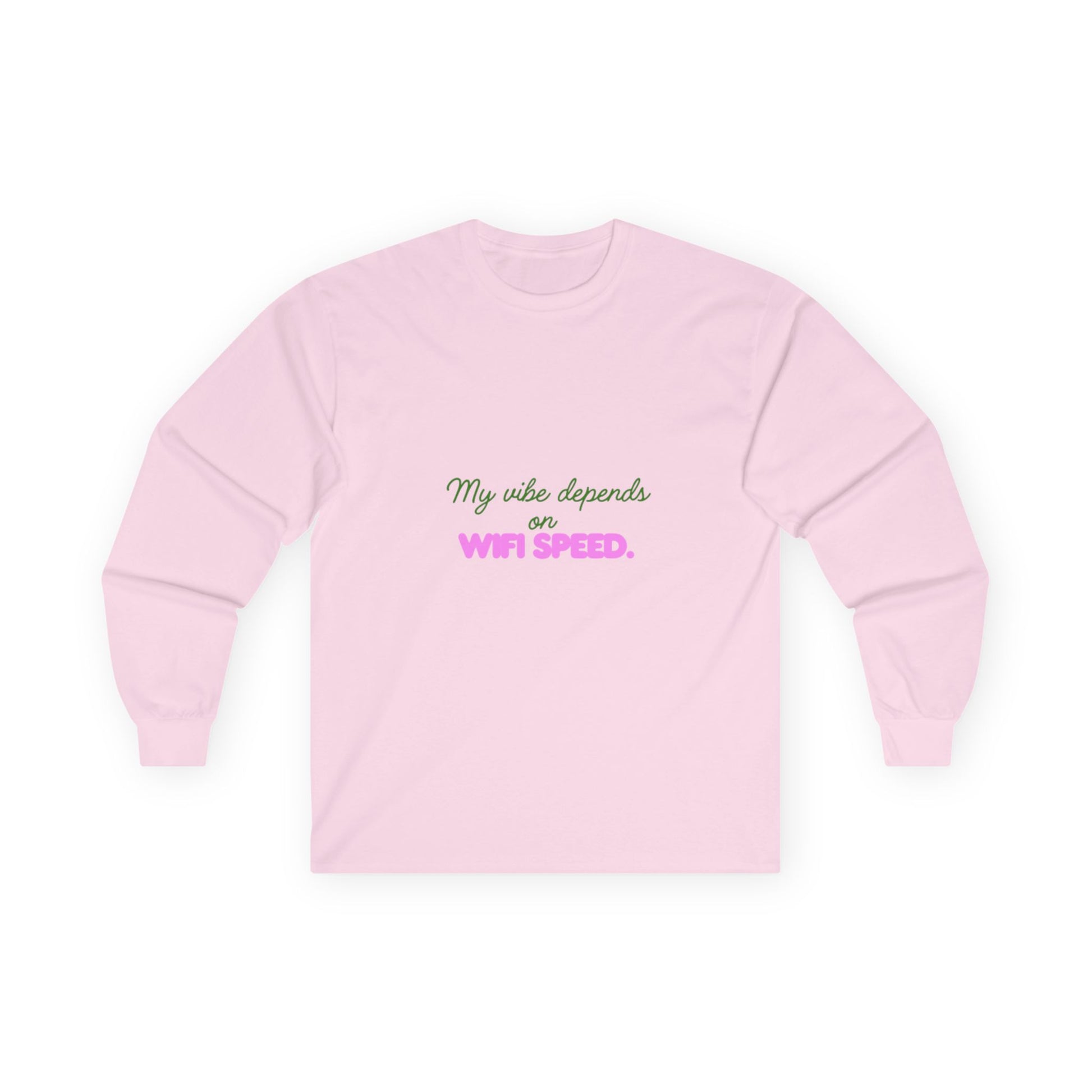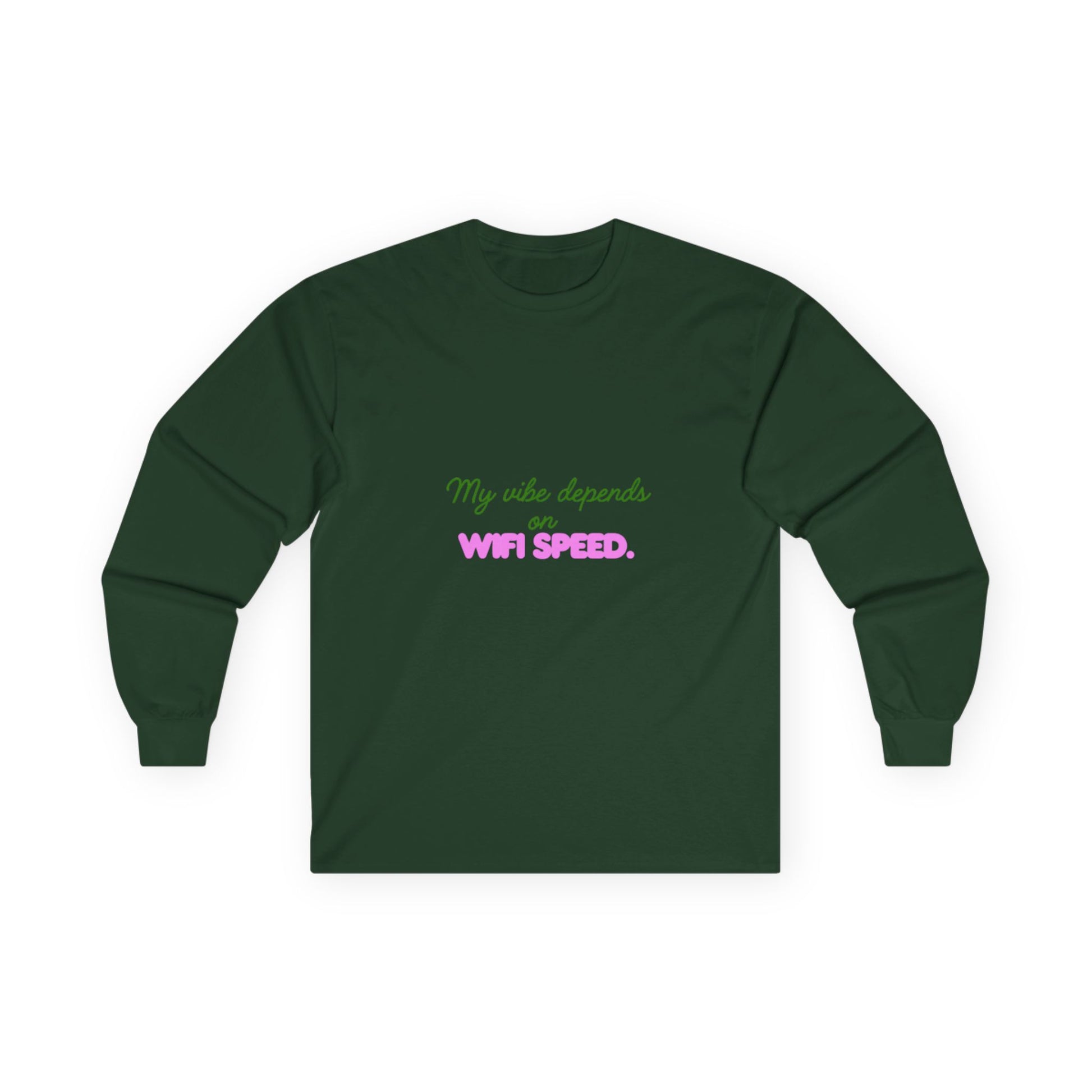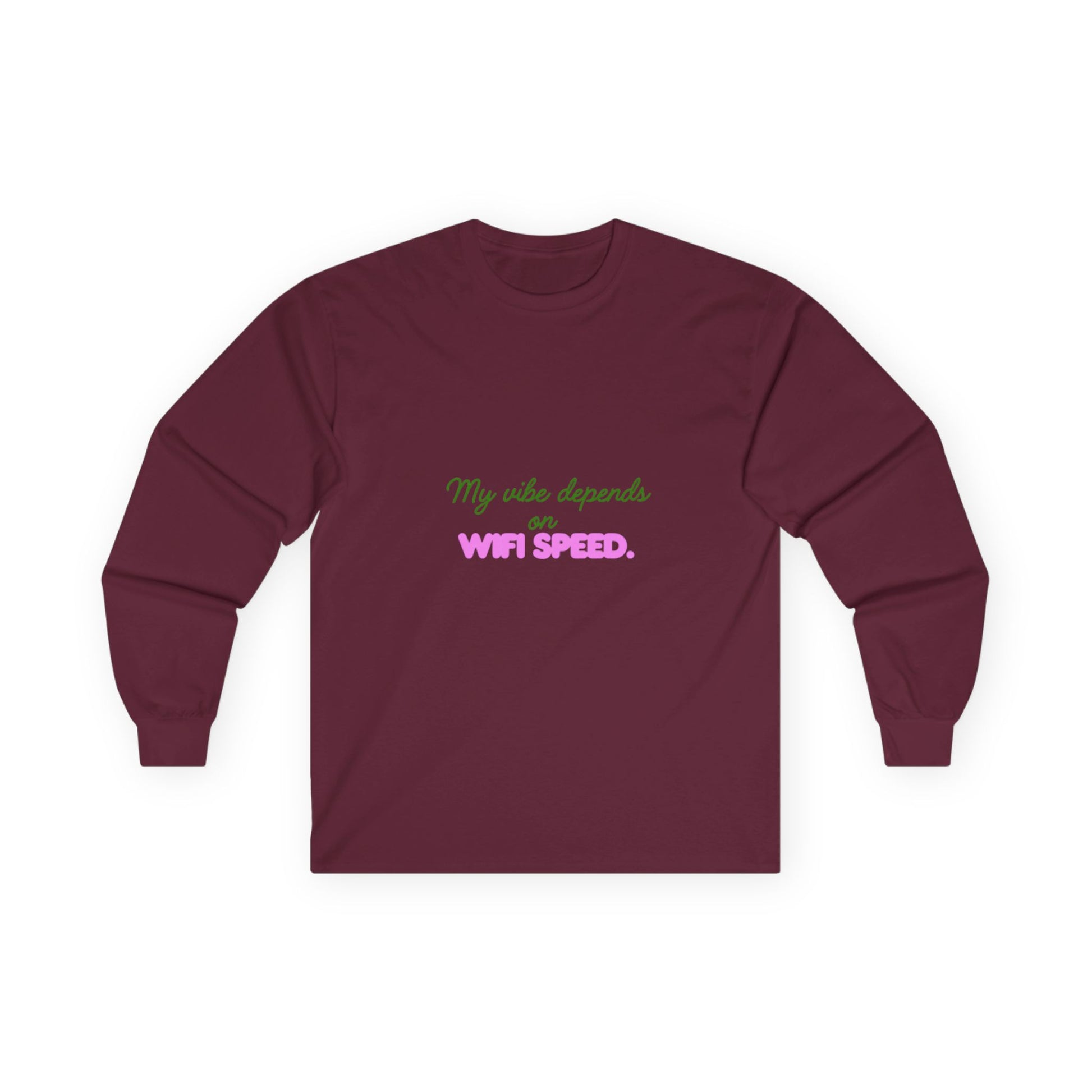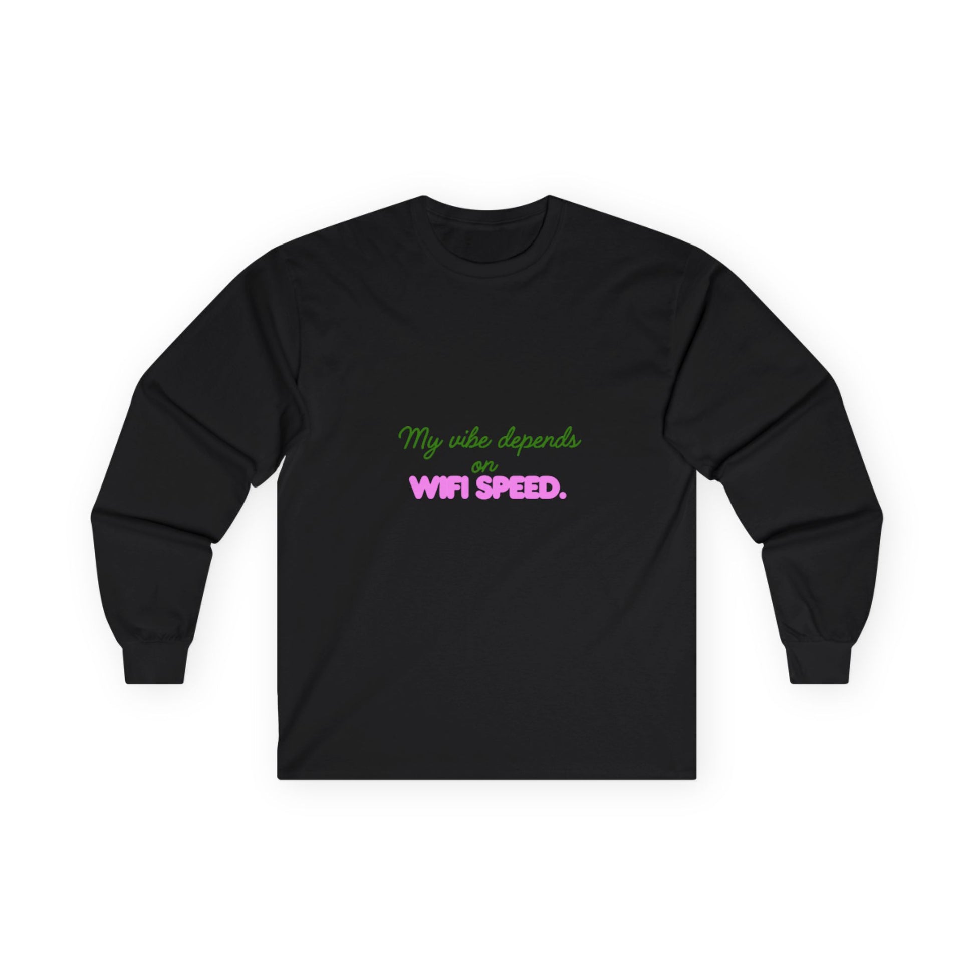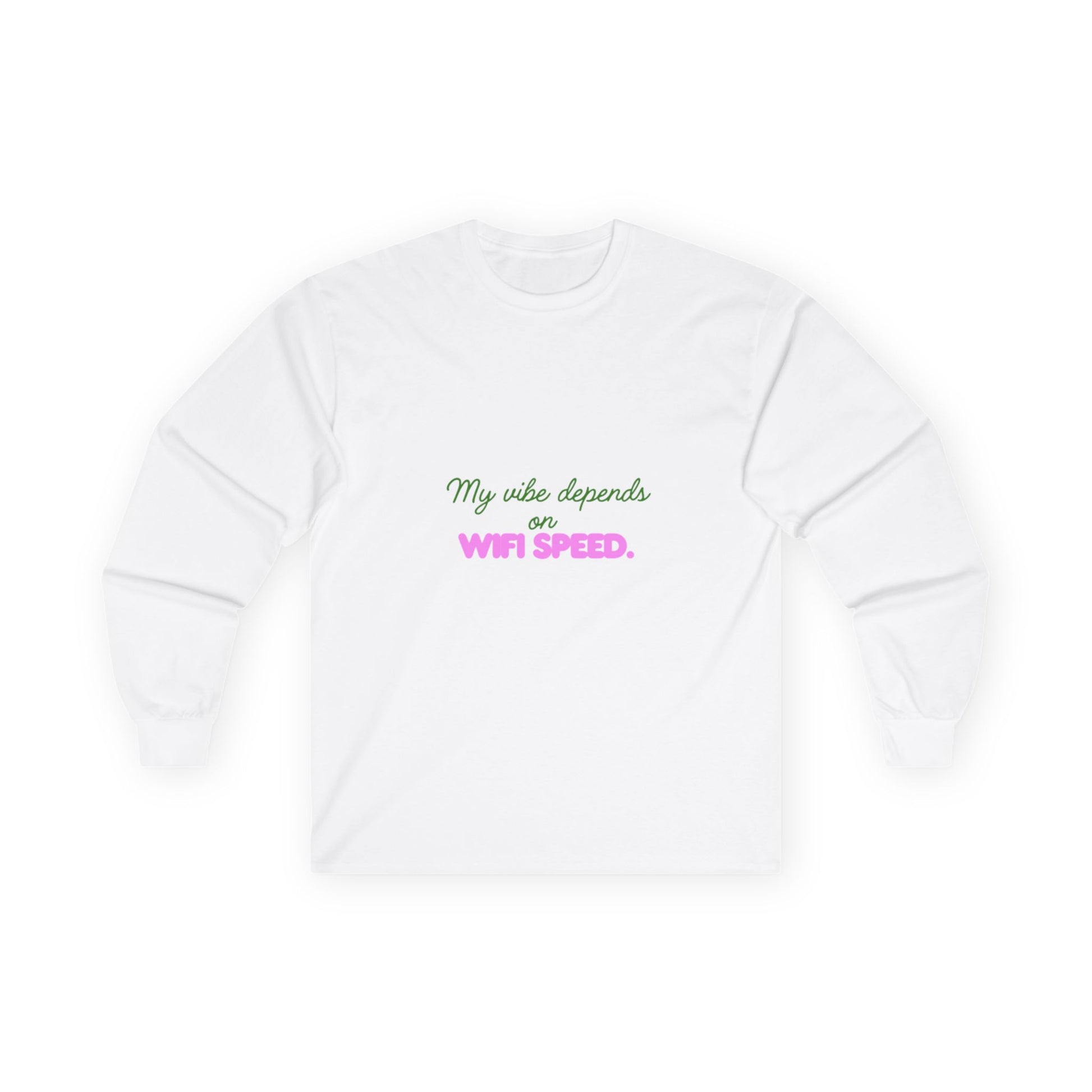 My Vibe Depends on WiFi Speed Long Sleeve Tee, Funny Tech Shirt, Gift for Gamers, Internet Lover's Apparel, Comfortable Casual Wear